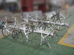 GLD攪拌器應用于高粘度(超過100,000cp)的流體攪拌中,有較好的傳熱和表面新效果。其結構形式有單螺帶和雙螺帶二種。不同數量的翼片,不同螺距以及不同形式的螺帶可以根據不同的攪拌要求而特殊制作。