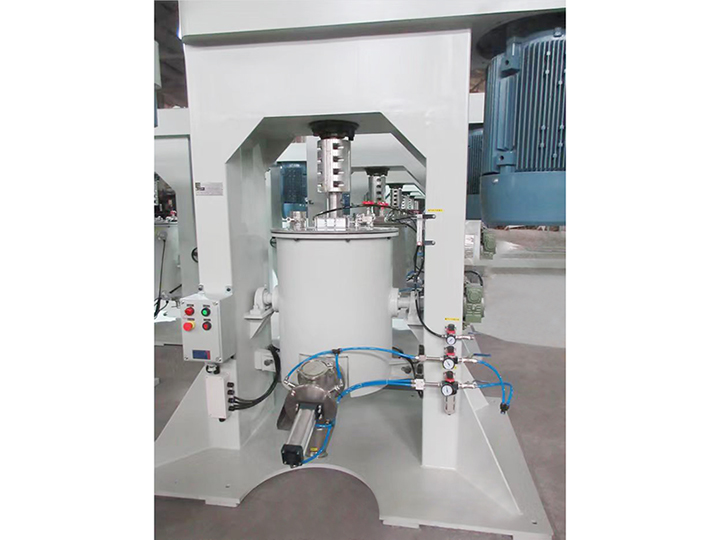 立式砂磨機的特性是原料由下往上壓送由上方出料,所有送入研磨缸內的原料經過研磨,所以能達到完整的研磨效果。且在全封閉的研磨缸內運轉研磨,所以沒有溶劑揮發污染空氣的問題,能確保工作人員的身心健康。