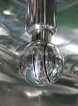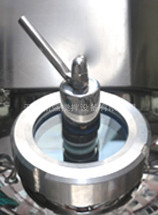 物料在水鍋、油鍋內通過加熱、攪拌進行混合反應后,由真空泵吸入乳化鍋,通過乳化鍋內上部的中心攪拌、聚四氟乙烯刮板始終迎合攪拌鍋形體,掃凈掛壁粘料,使被刮取的物料不斷產生新界面,再經過葉片的剪斷、壓縮、折疊,使其攪拌、混合而向下流往鍋體下方的均質器處,物料再通過高速旋轉的切割輪與固定的切割套之間所產生的強力的剪斷、沖擊、亂流等過程,物料在剪切縫中被切割,迅速破碎成200um-0.2um的微粒,由于乳化鍋內處于真空狀態,物料在攪拌過程中產生的氣泡被及時抽走。采用抽真空的方式,使所生產的制品在攪拌過程中不再混入氣泡,從而保證可制造出富有光澤、細膩及延展性良好的產品。